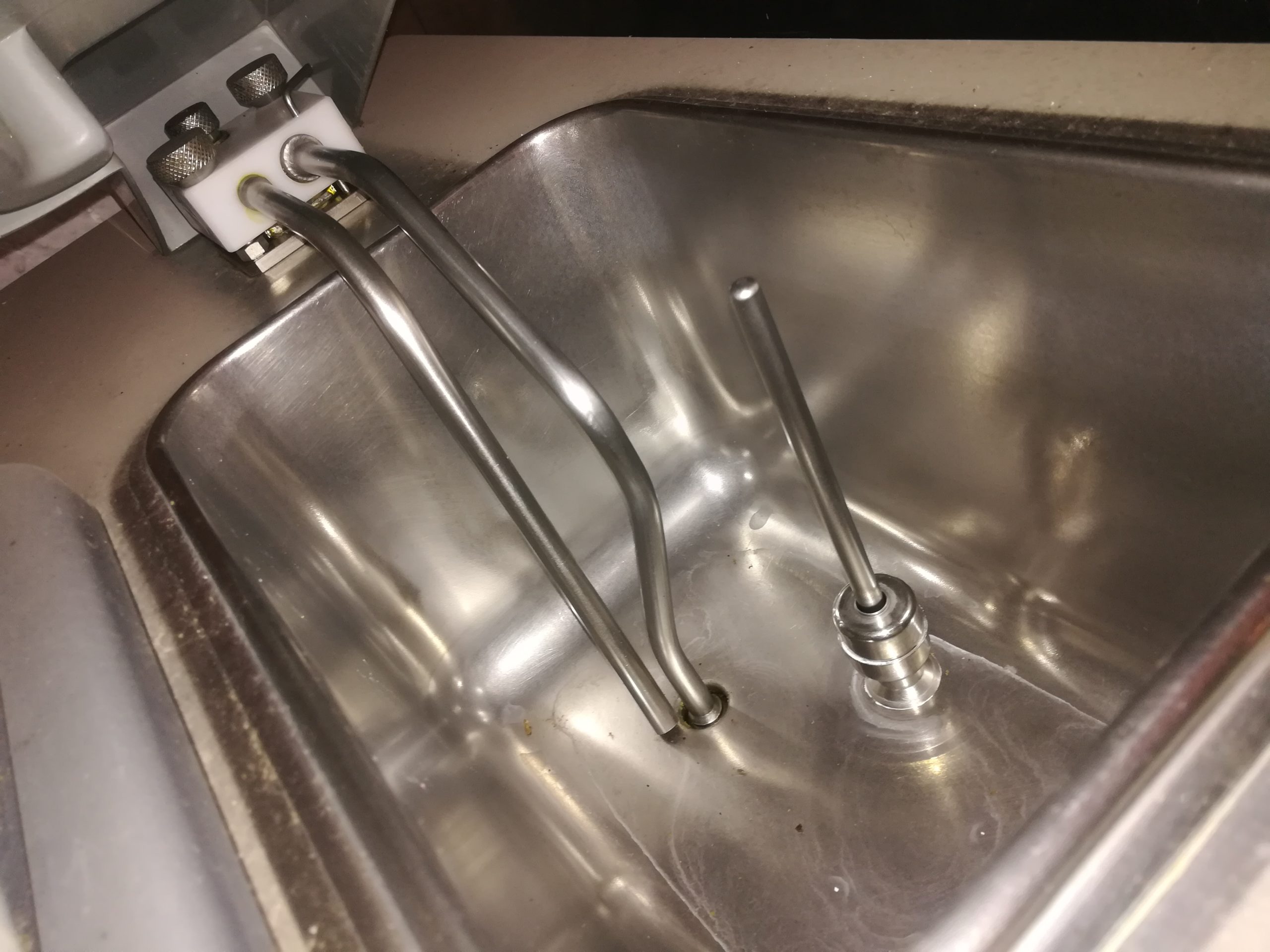 - L’alimentazione dei cilindri avviene con 2 pompe rotative di pressurizzazione che vengono risciacquate per passaggio senza doverle smontare quotidianamente.